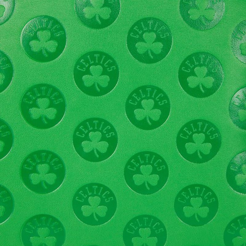 Score a slam dunk with the NBA Boston Celtics Logo Mini Backpack. On the front, the embroidered Lucky leprechaun logo patch prominently appears just above the zipped front compartment. The entire backpack displays a debossed green field of shamrocks motif. Note the coordinating lining inside, which carries a pattern of shamrocks and Lucky, spinning a basketball, alternating with the Celtics shamrock motif.